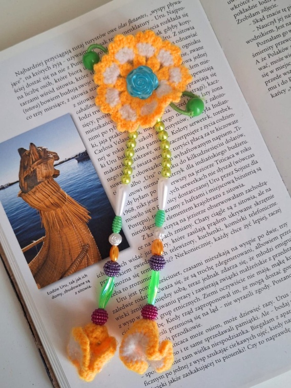 Ręcznie wykonane kwiaty na szydełku, dwa rzędy kolorowych koralików i miękka gumka tworzą kompozycję inspirowaną peruwiańskim folklorem. Każdy element został przygotowany w małej pracowni w Cusco — tam, gdzie tradycja i kolor idą ze sobą w parze.
