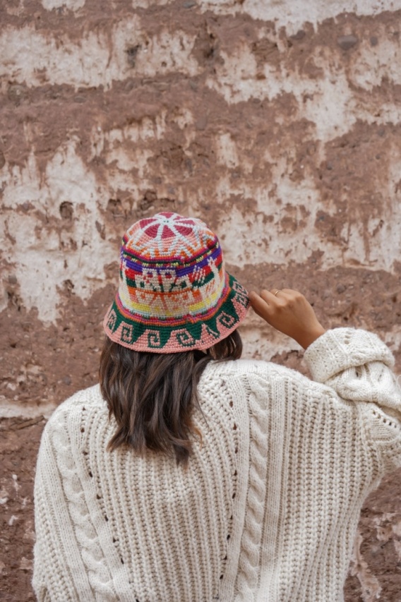 Kapelusz bucket z wełny wykonany na szydełku