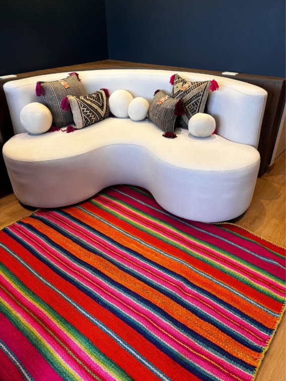 - Ręcznie tkany Peru: Każdy dywan jest starannie tworzony przez doświadczonych tkaczy z regionu Cusco, regionu słynącego z mistrzowskiego rzemiosła.